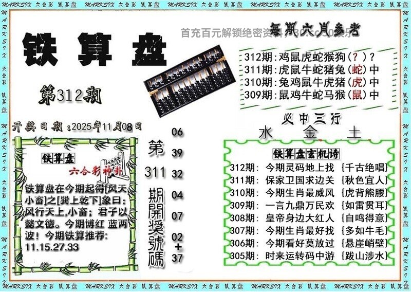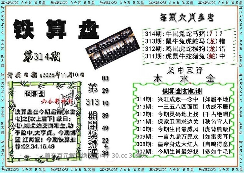 - 315期:澳门百分百网④肖④码期期中奖✔